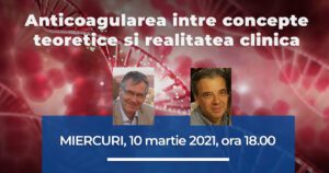Vă invităm pe data de 10 martie 2021 la ora 18:00 să asistați live la webinarul intitulat "Anticoagularea între concepte teoretice și realitatea clinică." ce tratează câteva dintre dificultățile pe care medicii specialiști le întâlnesc în activitatea cotidiană privind administrarea anticoagulantelor orale directe în rândul pacienților cu fibrilație atrială non valvulară și comorbidități sau a celor cu evenimente tromboembolice venoase. » Mai mult